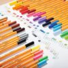 Le penne più colorate del mondo! Classico, alla moda, cool, STABILO point 88 è il fineliner Nr. 1 in Europa: con i suoi 6 miliardi di pezzi venduti in tutto il mondo, è un classico senza tempo! Le sue 55 sfumature di colore, che includono 6 tonalità NEON, la rendono la penna colorata per eccellenza per scrivere, colorare, sottolineare, prendere appunti, lavorare con righelli, squadre e stencil, fare schizzi e rendere diari e agende ancora più colorati. E’ eccellente per ogni tipo di utilizzo! Nel disegno consente di creare i minimi dettagli, nella scrittura garantisce precisione sul foglio. Le penne fineliner STABILO point 88 sono le compagne perfette per alunni, studenti e professionisti. STABILO point 88 ha una punta con tratto fine 0.4 mm che garantisce precisione e controllo, e un supporto della punta in metallo che offre stabilità e durabilità. Ha un cappuccio ventilato anti-soffocamento, è comodo da impugnare grazie al fusto esagonale, e la sua speciale formula dell’inchiostro garantisce la massima performance anche senza cappuccio. STABILO point 88 è anche il compagno perfetto per gli hobby di scrittura creativa come Bullet Journal, Sketchnotes, Hand lettering, e di colore come Art-Therapy.